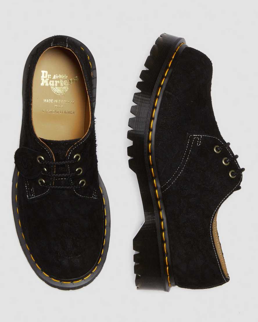 Magnified craftsmanship. This reworked version of our classic 1461 shoe is constructed with a bump toe for an exaggerated profile and even more DM??s edge. Built from C. F. Stead??s characterful Heavy Emboss Hairy Suede with woven laces, antique brass hardware, and a removable swing tag. The shoe stands on a heightened Bex sole with deep cleats and our signature yellow welt stitching.