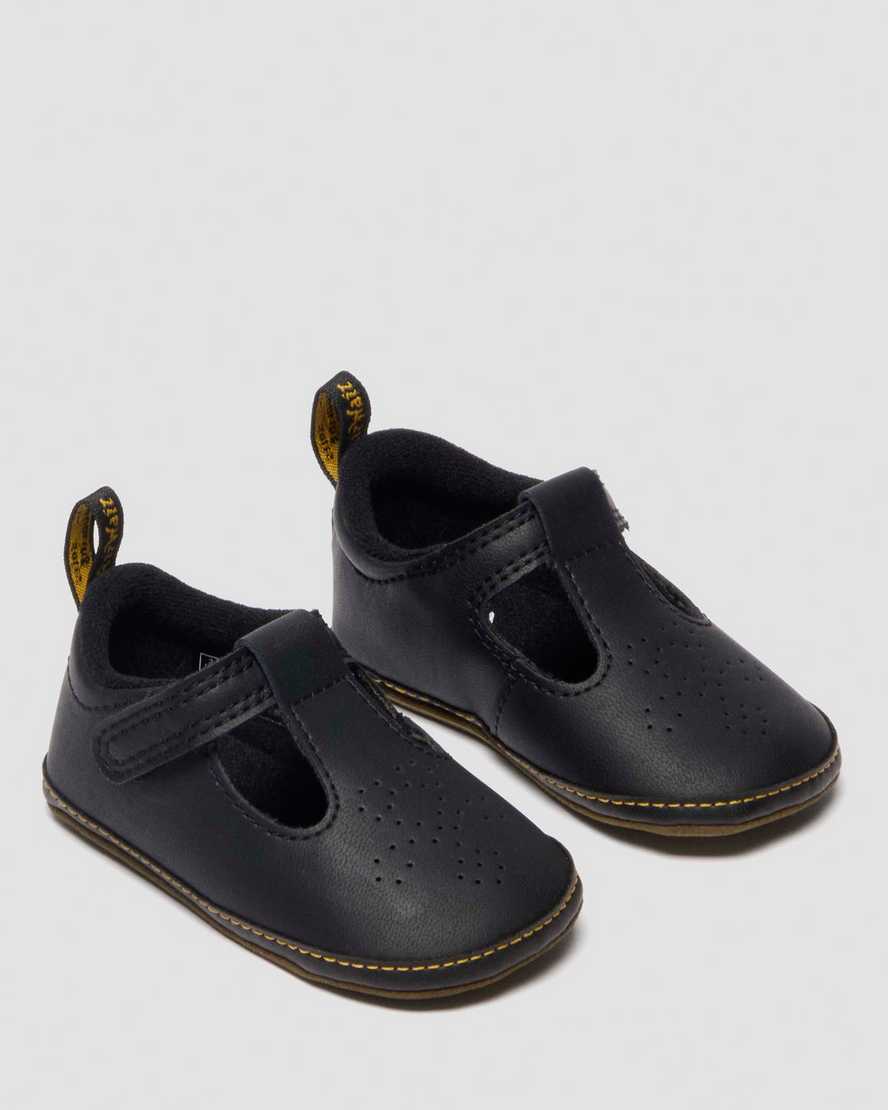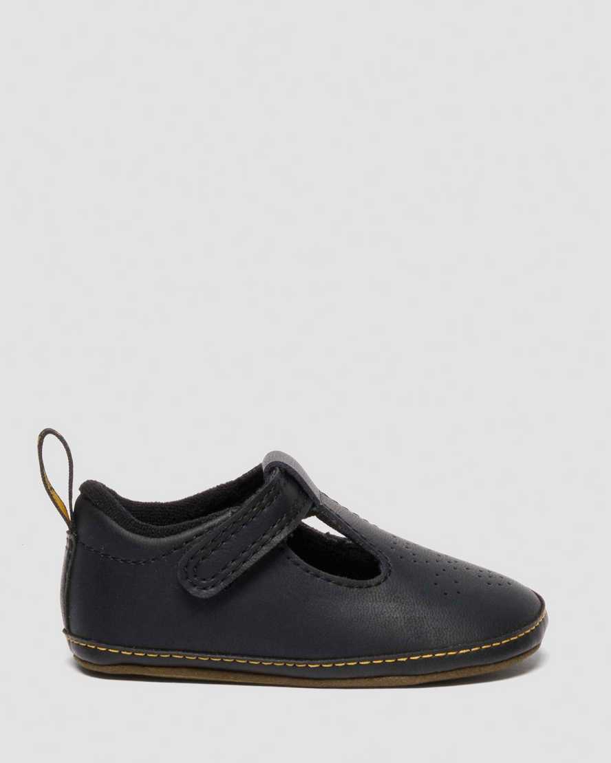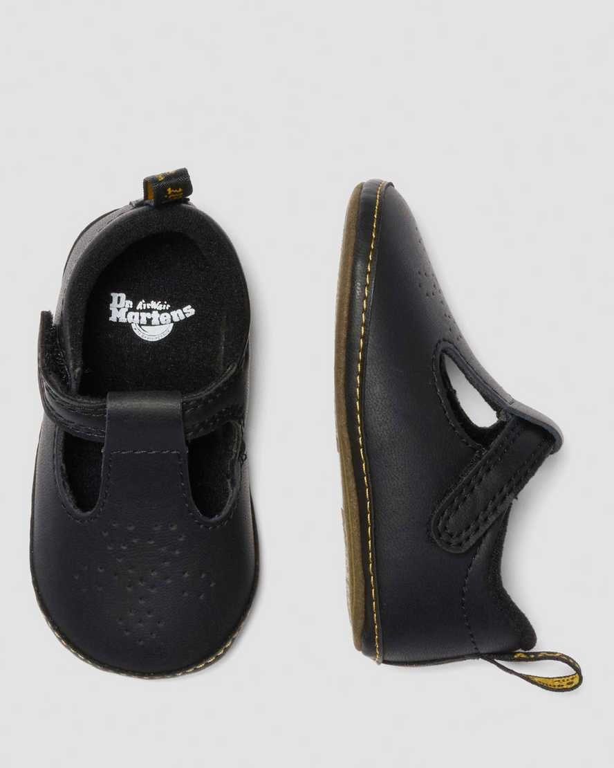 Shrunken design for new feet. The Polley Crib shoe takes our smash hit silhouette and scales it down for the next generation of wearers. Built with Mason Split, a waxy PU-coated leather, the shoe keeps the recognisable Polley T-bar feature that??s loved by our wearers. With heart-shaped perforation along the vamp, mock welt detailing and a padded collar for comfort. We finished the silhouette with a mini scripted heel loop and a microfibre sole with DMS tread puff print for those first steps.