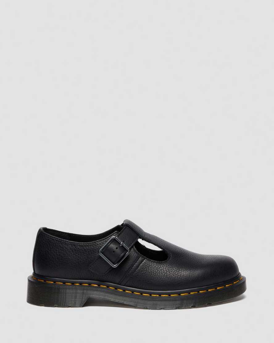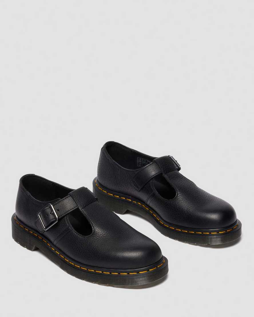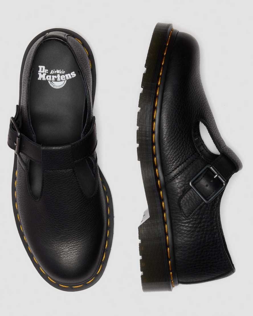 Gentler feel ÿ same subversive design. The Polley Mary Jane shoe is revisited with comfort-forward thinking. Built with soft Ambassador leather, the T-bar structure with an adjustable buckle and recognisable yellow welt stitching stay true to the original Polley design. The shoe is sealed with a smoke grey DMS outsole.