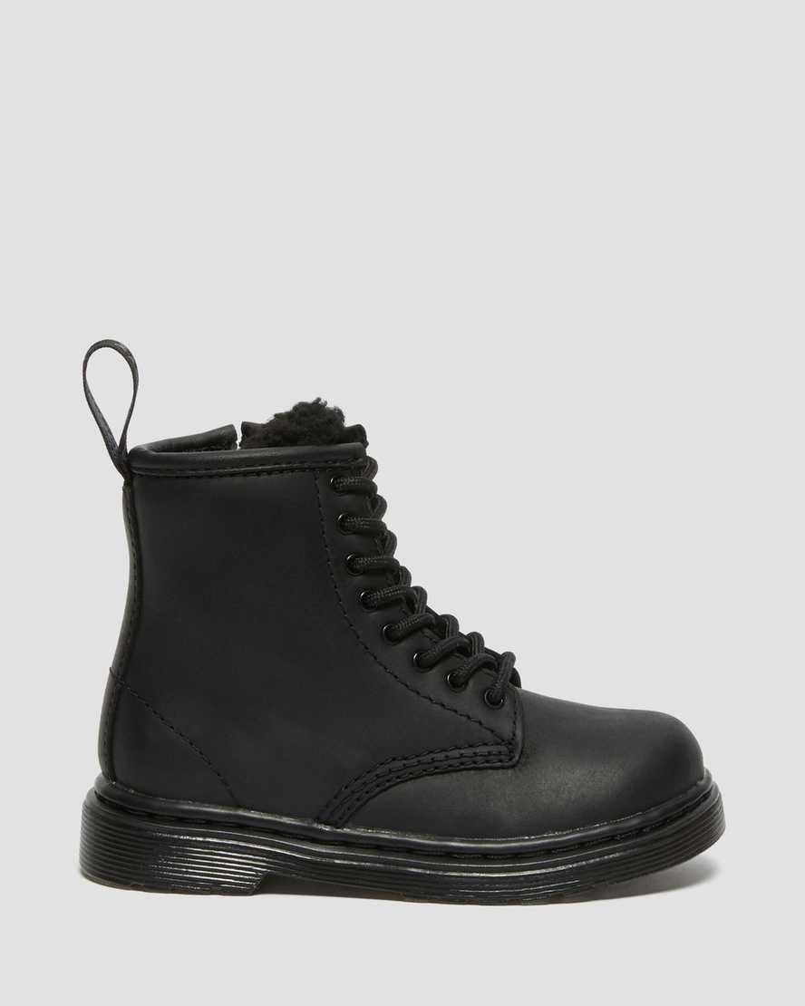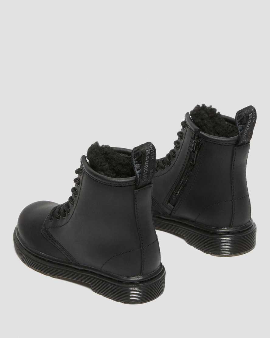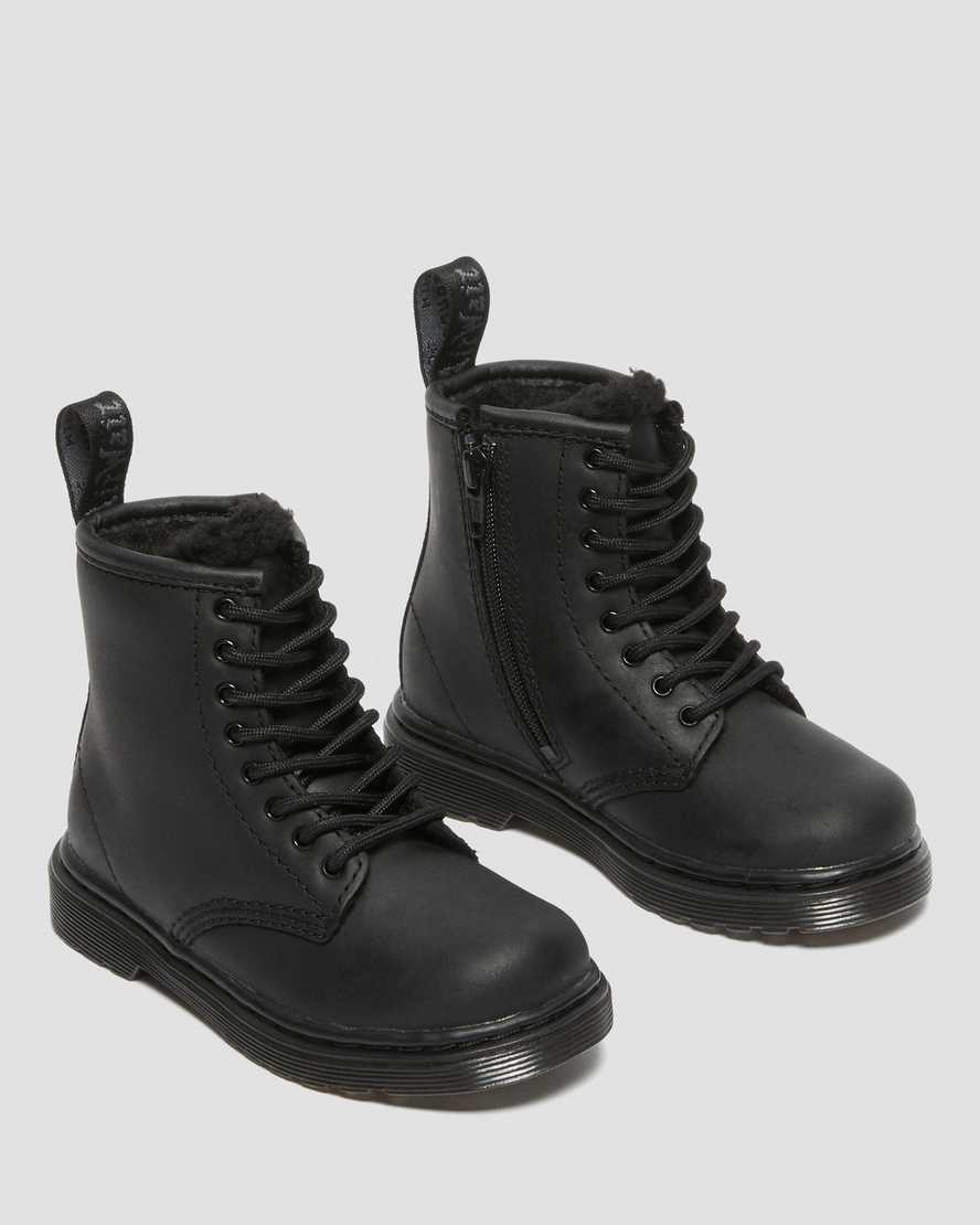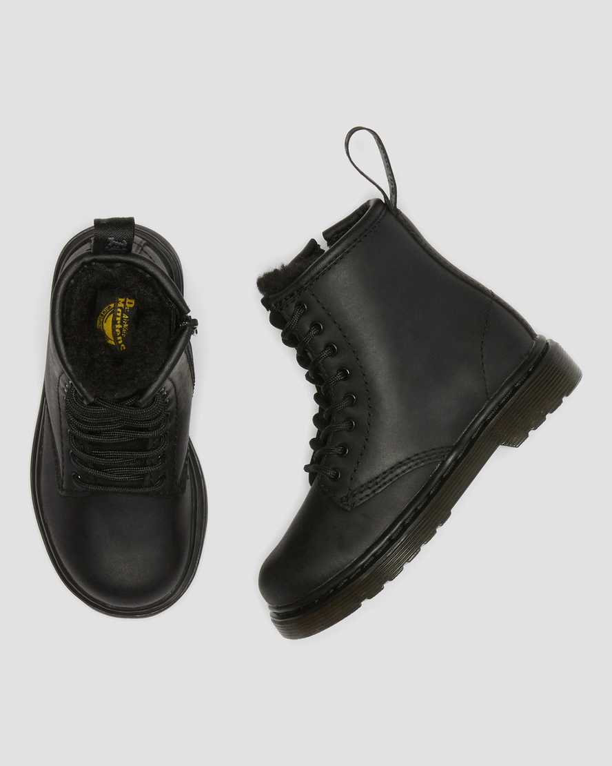 WarmWair, in upcoming rebel sizes. Made to keep little feet dry and comfortable, these boots are built from a waxy, water-repellent leather and lined with Sherpa faux fur. With black welt stitching, a smoke colored sole and a black charcoal heel loop, the monochrome boots are ready for whatever your little rebel throws at them.