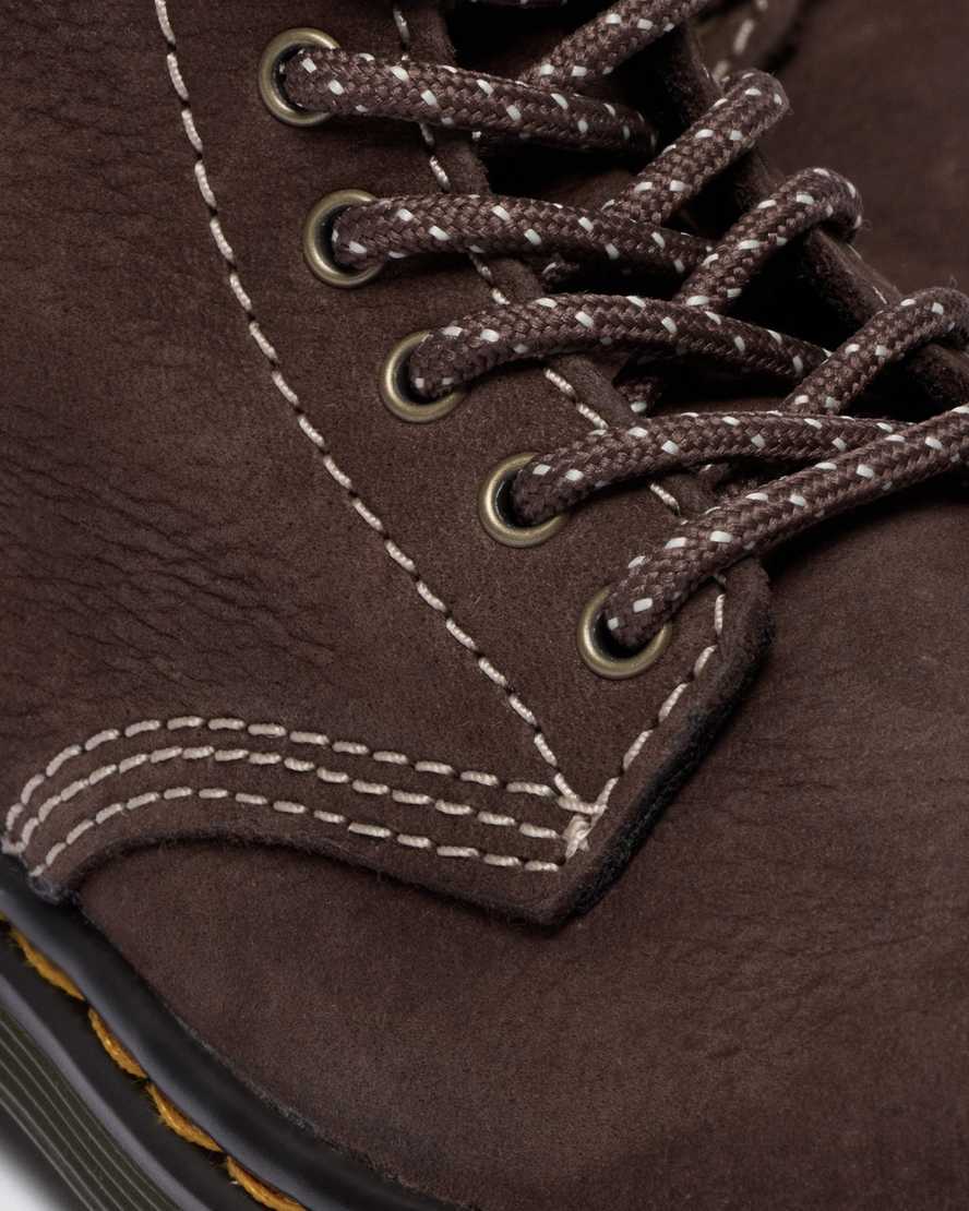 Classic boots for growing feet. The 1460 boot reworks our original 8-eye silhouette for the next generation of DM??s wearers. Built from soft, water-resistant milled nubuck leather, these boots are tough enough for every step and stomp. Detailed with contrast ecru stitching, popped laces, and a bitter chocolate outsole, grounded in DM??s unmistakable yellow stitch and heel loop.