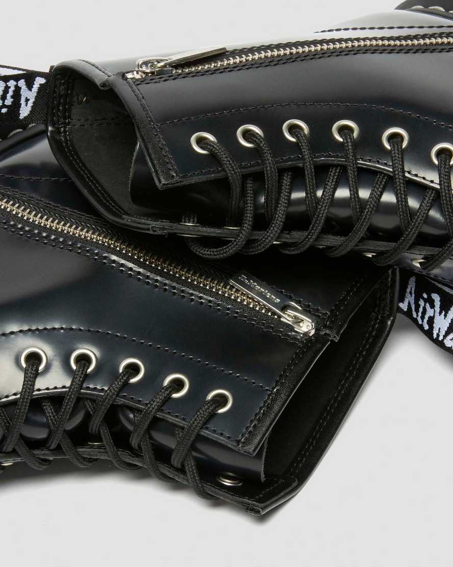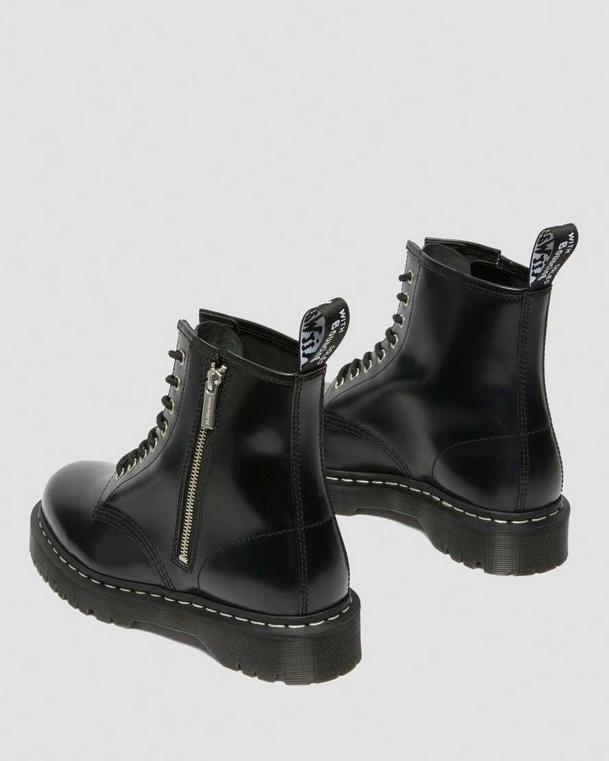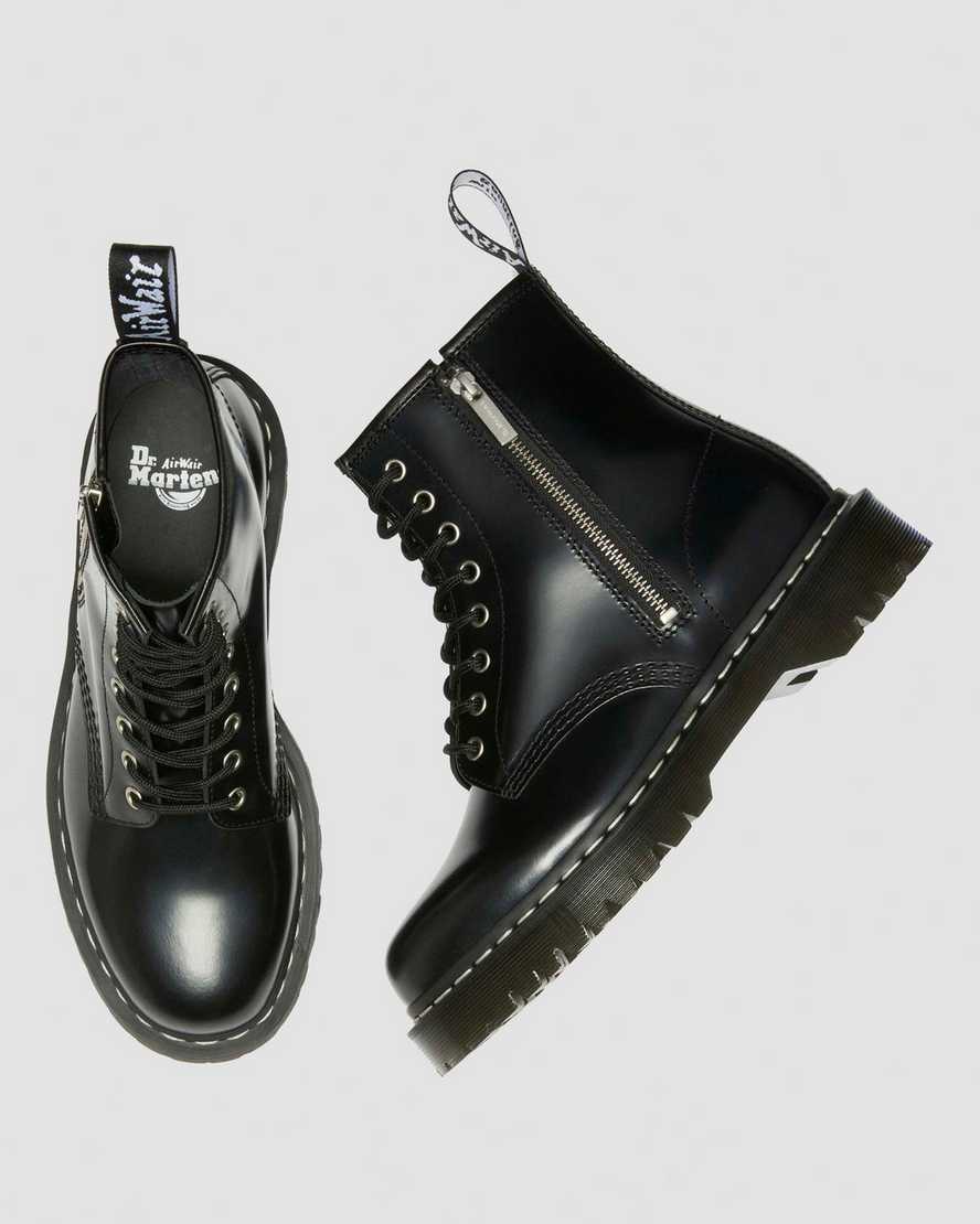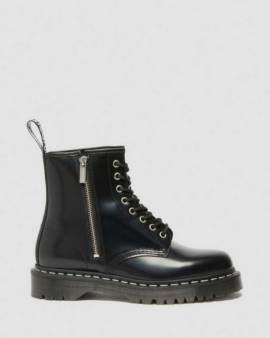 A new spin on your favourite boot. This version of our 1460 Bex boot stands on our elevated Bex sole and retains the classic hallmarks of our Original 8-eye silhouette ??with an added side zip for a touch of metal and a faster way to slip the boot on and off. The boot has silver eyelets, white welt stitching, and a black and white heel loop.