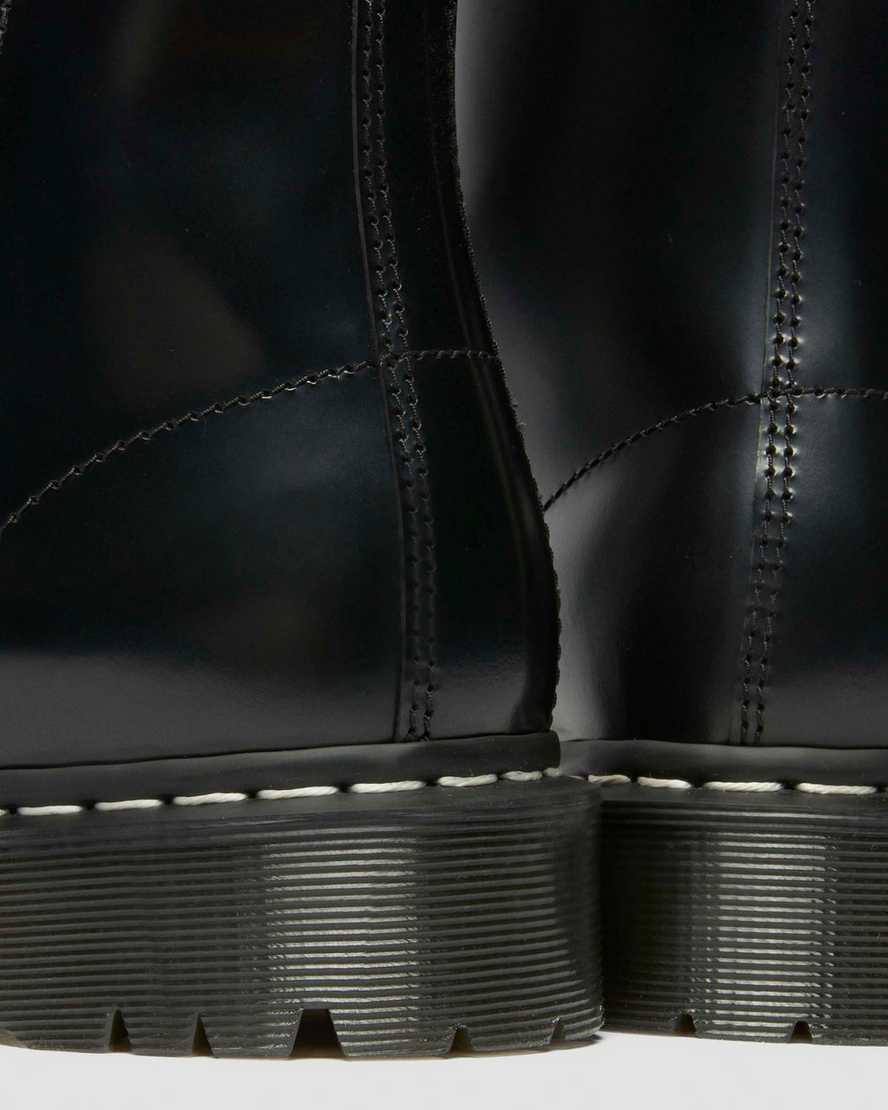 A twist on the classic Dr. Martens leather: durable, with a smooth and polished finish.