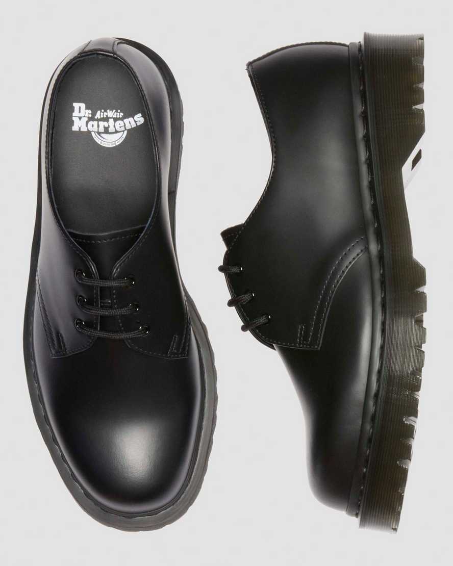 Bump up the volume. The classic 1461 shoe inflated and exaggerated with a workwear-inspired bump toe design in monochrome black-on-black. Constructed from rugged Waxy Commander leather in our original English factory for premium durability. Raised on an added-height Bex outsole and secured with a stealth welt stitch. Finished with tonal braid laces and hardware.