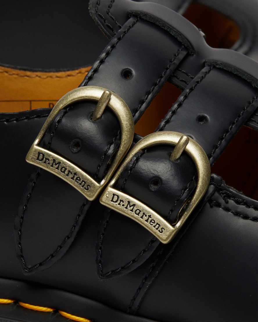 Our spin on the classic Mary Jane shoe pairs the traditional silhouette with a bouncing DM??s sole and a heavy dose of attitude. Built from Smooth leather with double straps, adjustable horseshoe buckles, and brogue detailing on the vamp. Signed with our instantly recognizable yellow welt stitching.