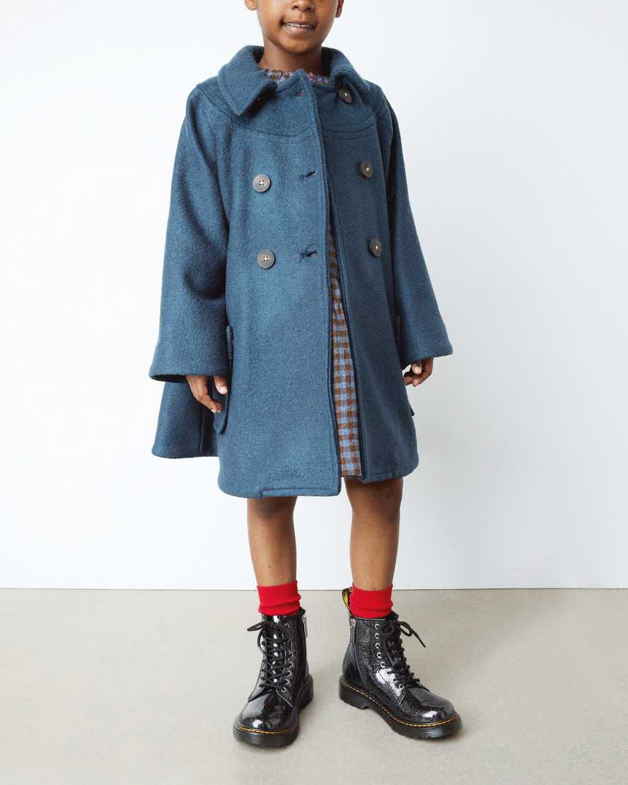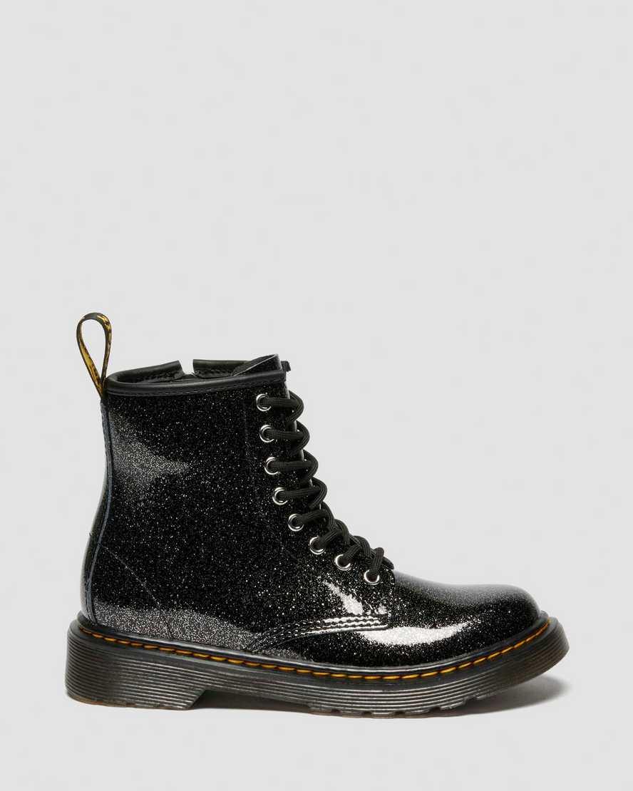 The original DM??s boot ÿ glittered for tiny feet. This revamped design is built for personalities that shine early on. Using Nebula Glitter, a classic patent leather with a high-shine finish and a sparkle effect. The silhouette has all the signature 1460 8-eye boot features you??d expect: a scripted heel loop and yellow faux welt stitching. Along with shiny silver eyelets, an inside zip and a cemented smoke DMS Kids sole.
