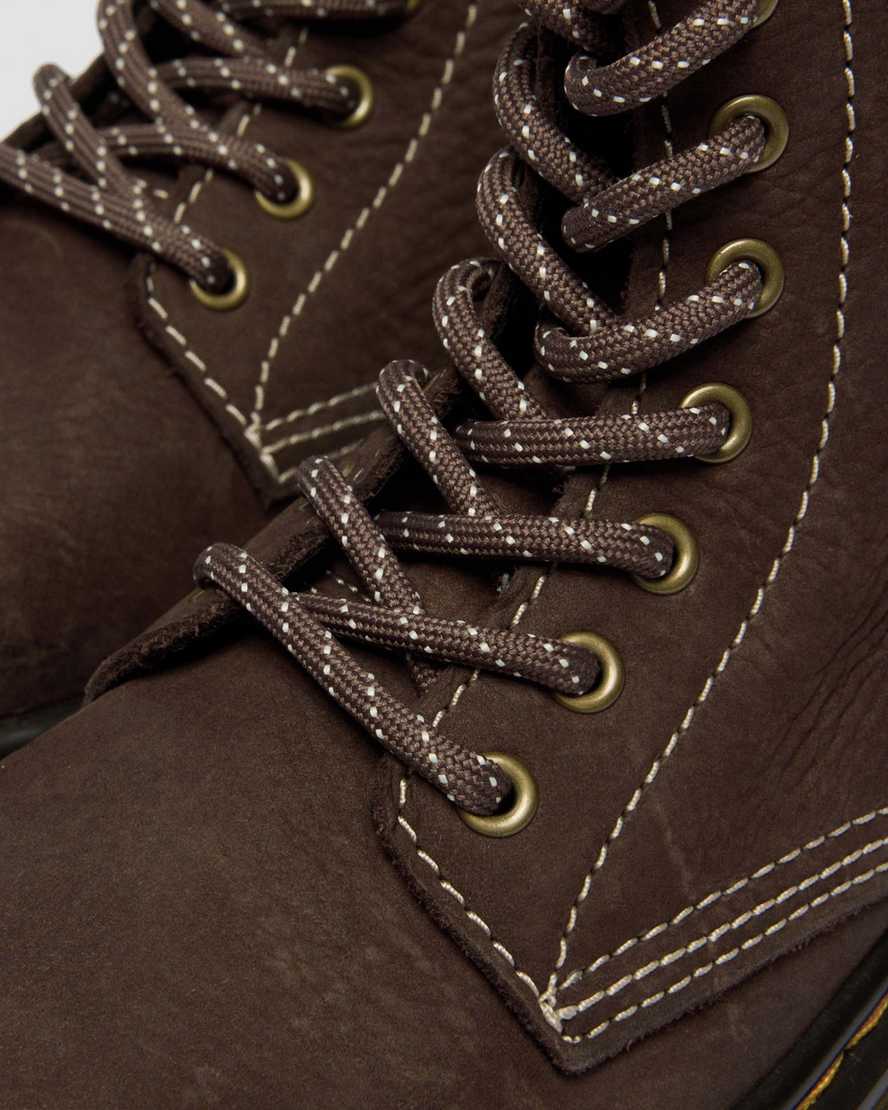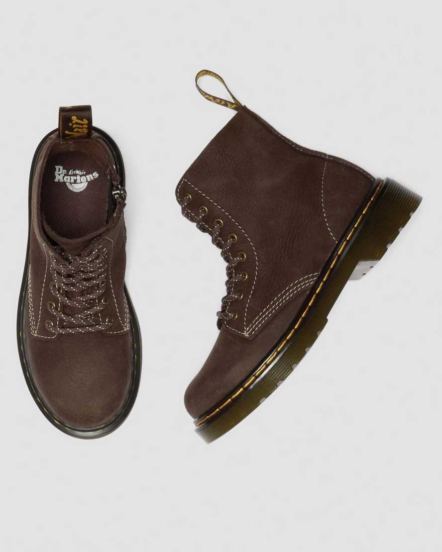 Classic boots for growing feet. The 1460 boot reworks our original 8-eye silhouette for the next generation of DM??s wearers. Built from soft, water-resistant milled nubuck leather, these boots are tough enough for every step and stomp. Detailed with contrast ecru stitching, popped laces, and a bitter chocolate outsole, grounded in DM??s unmistakable yellow stitch and heel loop.