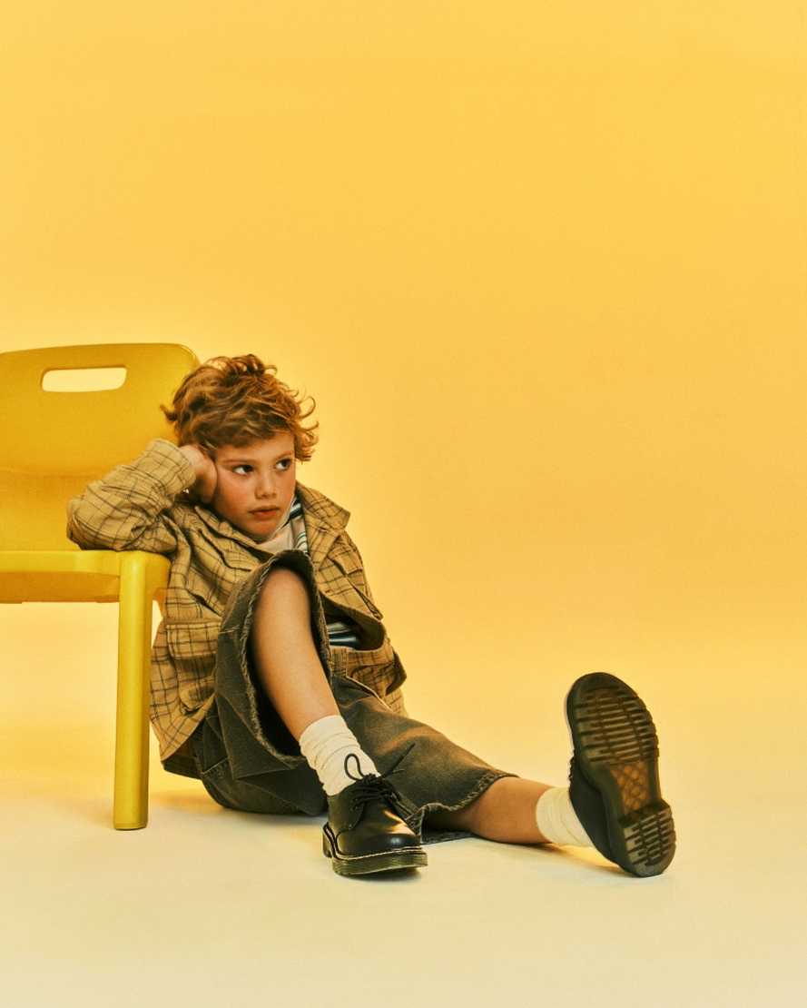 The Original Docs shoe. Rebuilt for the next generation of rebels. These cut-down 1461 shoes stay true to our classic 3-eye silhouette with yellow stitching around our signature air-cushioned sole. But are built from soft Romario leather that goes easy on little feet.
